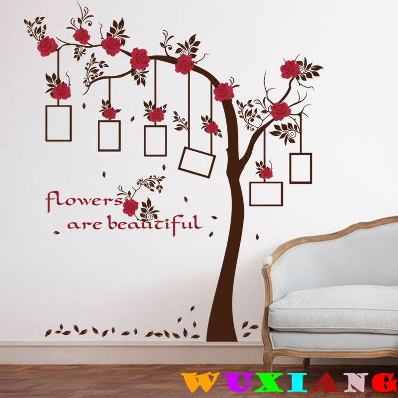 wuxiangWall Sticker Home Decal Bunga merah photo frame pokok besar rumah hiasan dinding pelekat | Shopee Malaysia