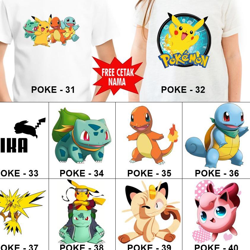 Terbagus.. [FREE NAMA!!] Baju Kaos COUPLE ANAK DAN DEWASA POKEMON BANYAK MOTIF | Shopee Indonesia