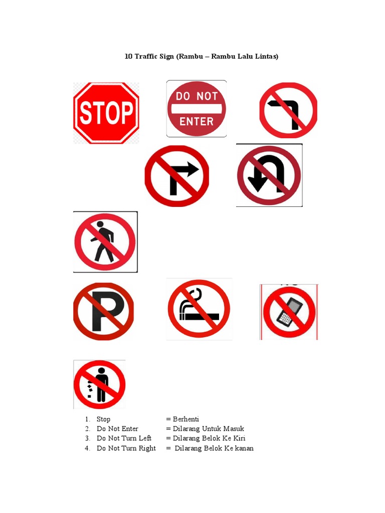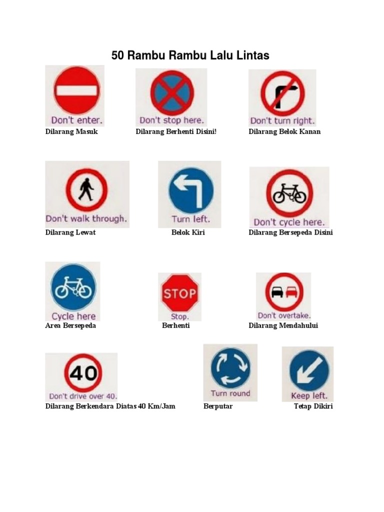 20 Rambu Rambu Lalu Lintas Dalam Bahasa