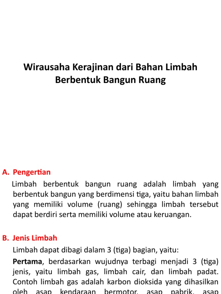 Makalah Wirausaha Kerajinan dari Bahan Limbah Berbentuk Bangun Ruang Download DOC | PDF Lengkap