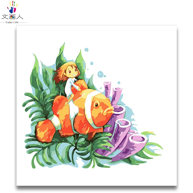 Gadis, ikan dan Rumput Laut Gambar dengan Angka Anime Lucu Diy Digital Cat dengan Angka dengan Kit untuk Anak Perempuan Praktek Cat dengan bingkai|Cat Dengan Nomor| - AliExpress