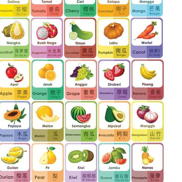 Promo.Flash.SALE Flashcard pengenalan nama buah sayur 3 bahasa / kartu pintar anak | Shopee Indonesia