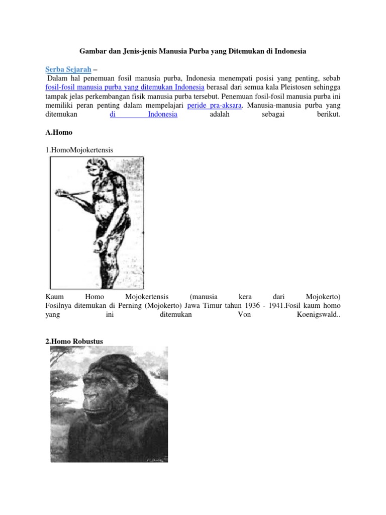 Jenis Jenis Manusia Purba di Indonesia | Sejarah, Manusia, Jenis