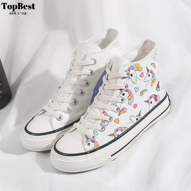Gambar Kartun Fashion Baru Sepatu Kanvas Wanita Hand-Painted Pegas Pelangi Dangkal Wanita Korea | Shopee Indonesia