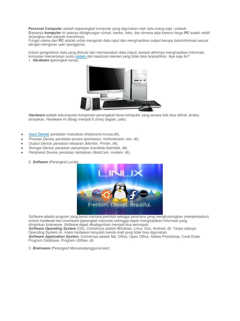 Personal Computer adalah seperangkat komputer yang digunakan oleh satu orang saja / pribadi