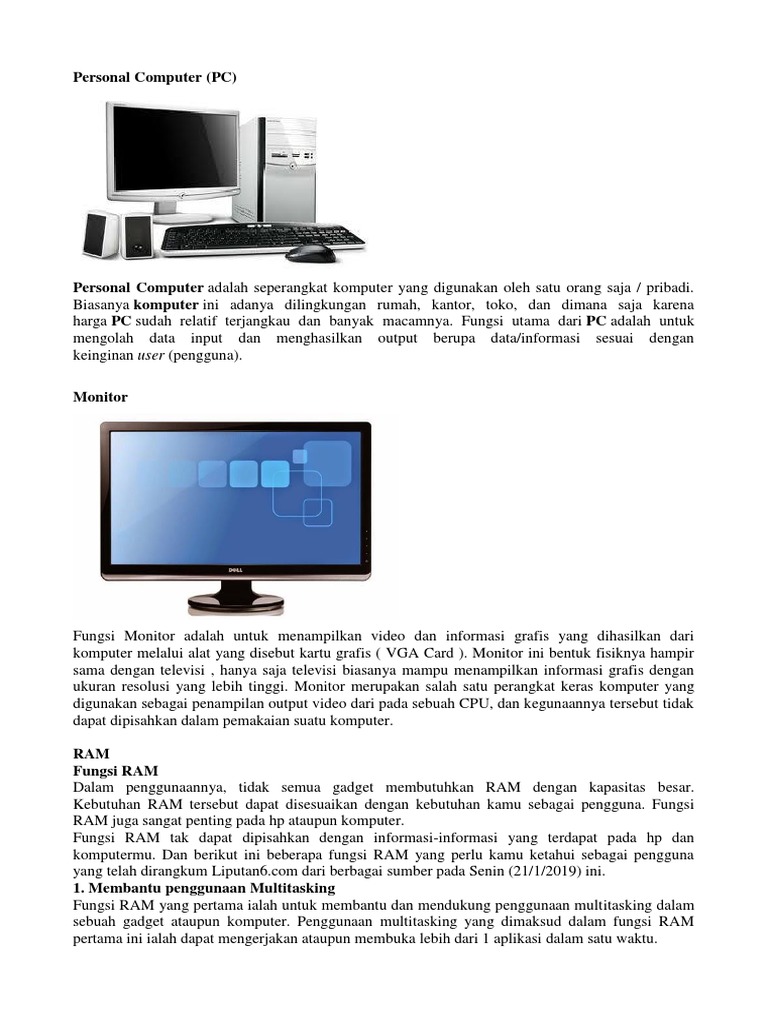 Perangkat Komputer Dan Fungsinya | Teknologi Informasi dan Komunikasi