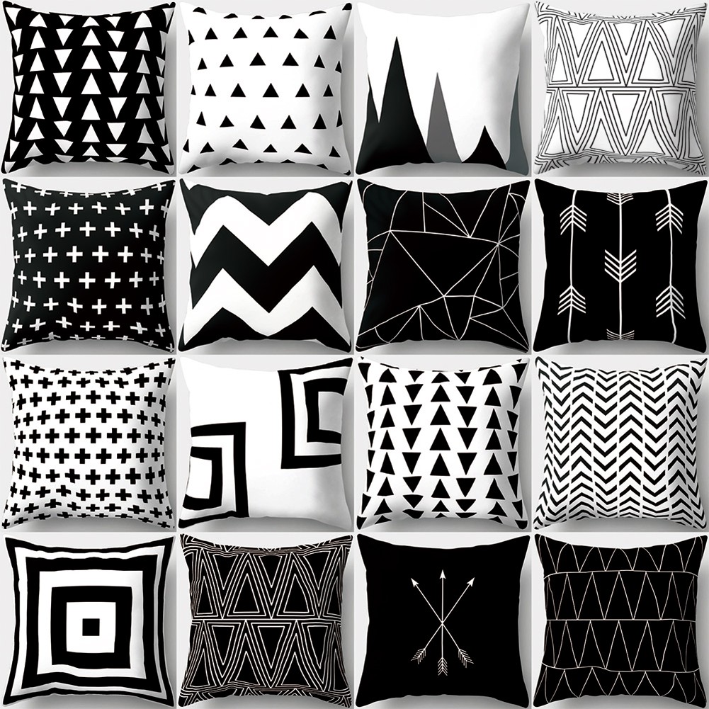 Bayar Di Tempat]Sarung Bantal Persegi Motif Geometris Warna Hitam / Putih untuk Dekorasi Rumah | Shopee Indonesia