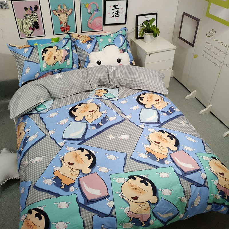Lowest Price NEW ARRIVAL bedsheet cadar queen Gaya kartun krayon Shin-chan kartun pelajar empat keping asrama tiga keping katil susun selimut linen katil kanak-kanak yang comel | Shopee Malaysia