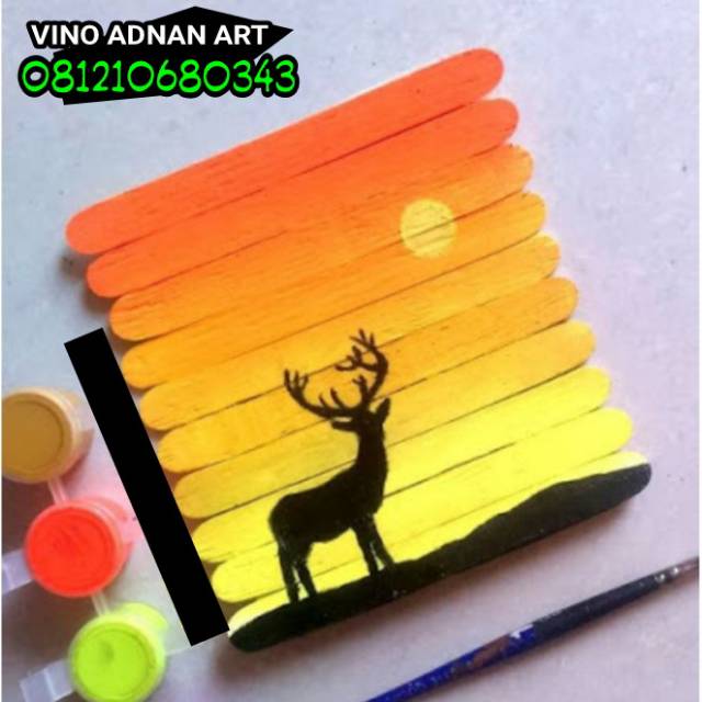 Pajangan dinding gambar lukisan dari stik es krim, uk12*12, untuk pemesanan min 2 item | Shopee Indonesia