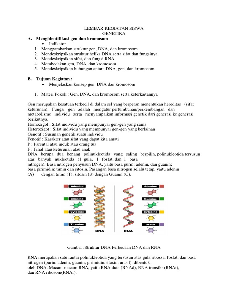 Contoh Soal Susunan RNA, Gen DNA, Kromosom SMA 1 | idschool