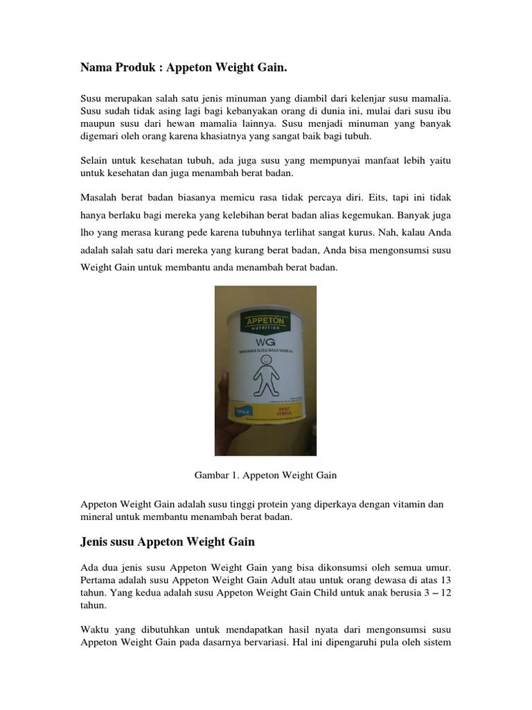 Appeton Weight Gain, Susu Formula yang Tepat untuk Penggemukan Badan – Informasi Seputar Kesehatan Mahasiswa