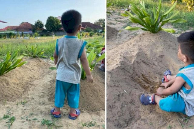 Mama…Mama!!!” Panggil Bocah Ini Sambil Memainkan Tanah Kuburan Ibunya