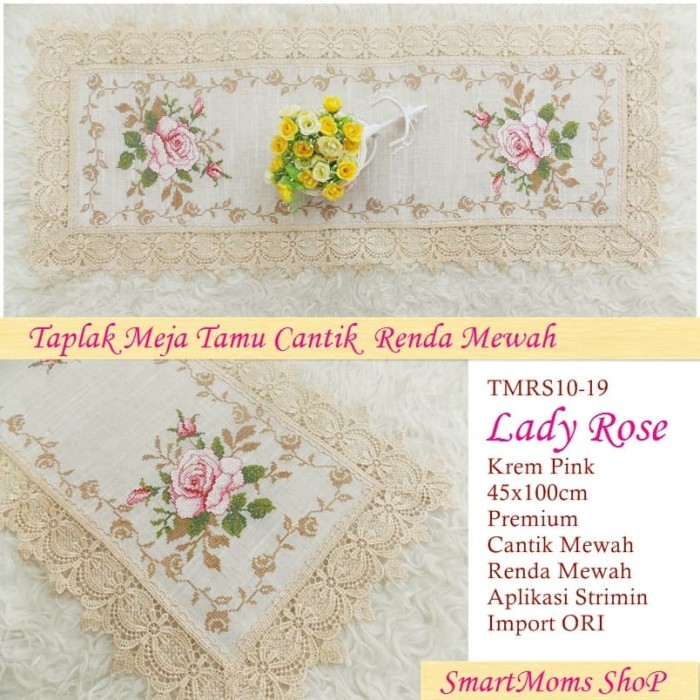 Jual TAPLAK MEJA TAMU SHABBY CHIC RENDA CANTIK STRIMIN BUNGA MAWAR LADYROSE - Kab. Bekasi - smartmoms-shop | Tokopedia