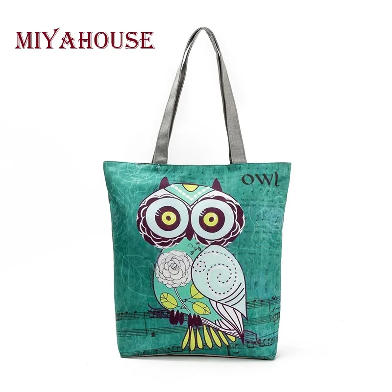 Miyahouse Kartun Burung Hantu Gambar Tas Bahu Wanita Tote Tas Kanvas Wanita Tas Wanita Tas Belanja Bolsa Feminina|Top-Handle Tas| - AliExpress