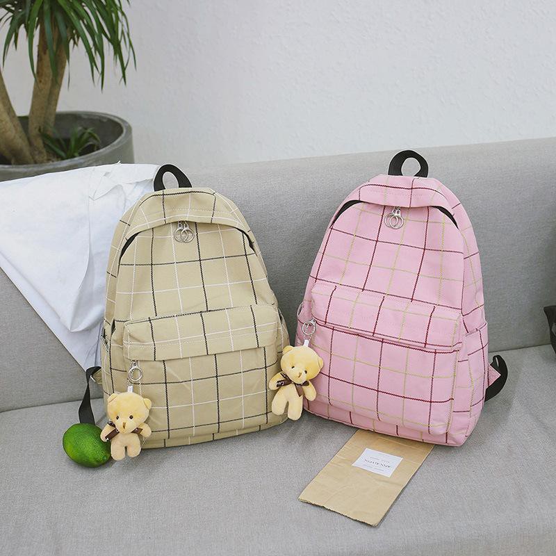 Tas Ransel Wanita Gaya Jepang Motif Kotak-Kotak untuk Kuliah | Shopee Indonesia