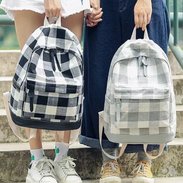 Bayar Di Tempat]Tas Ransel Sekolah / Travel Motif Kotak-kotak untuk Pria / Wanita tas export | Shopee Indonesia