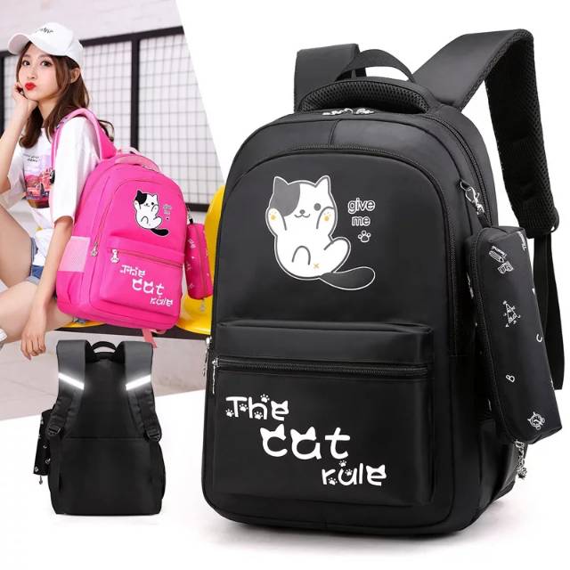 Tas Sekolah/untuk Anak Perempuan Remaja Kucing Lucu/Tas Ransel/Tas Sekolah Wanita | Shopee Indonesia