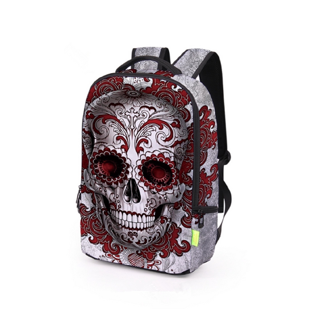 Tas Ransel Pria / Wanita Motif Tengkorak 3D untuk Travel / Outdoor / Sekolah / Kampus | Shopee Indonesia