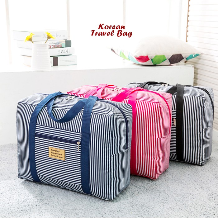 Korean Travel Bag Motif SALUR (Tas travel ukuran besar, super praktis) | Shopee Indonesia