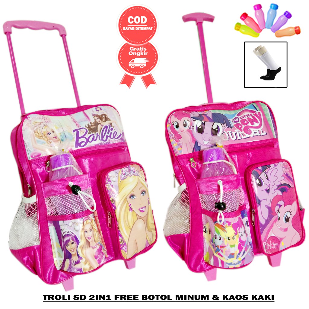 Tas Troli Anak Perempuan ukuran SD Free Botol Minum Gambar 2 in 1 Bisa Ransel Bisa Roda / Tas Roda Anak SD / Tas Trolley Anak / Tas Koper Anak SD ( Troli SD botol0712 ) | Lazada Indonesia