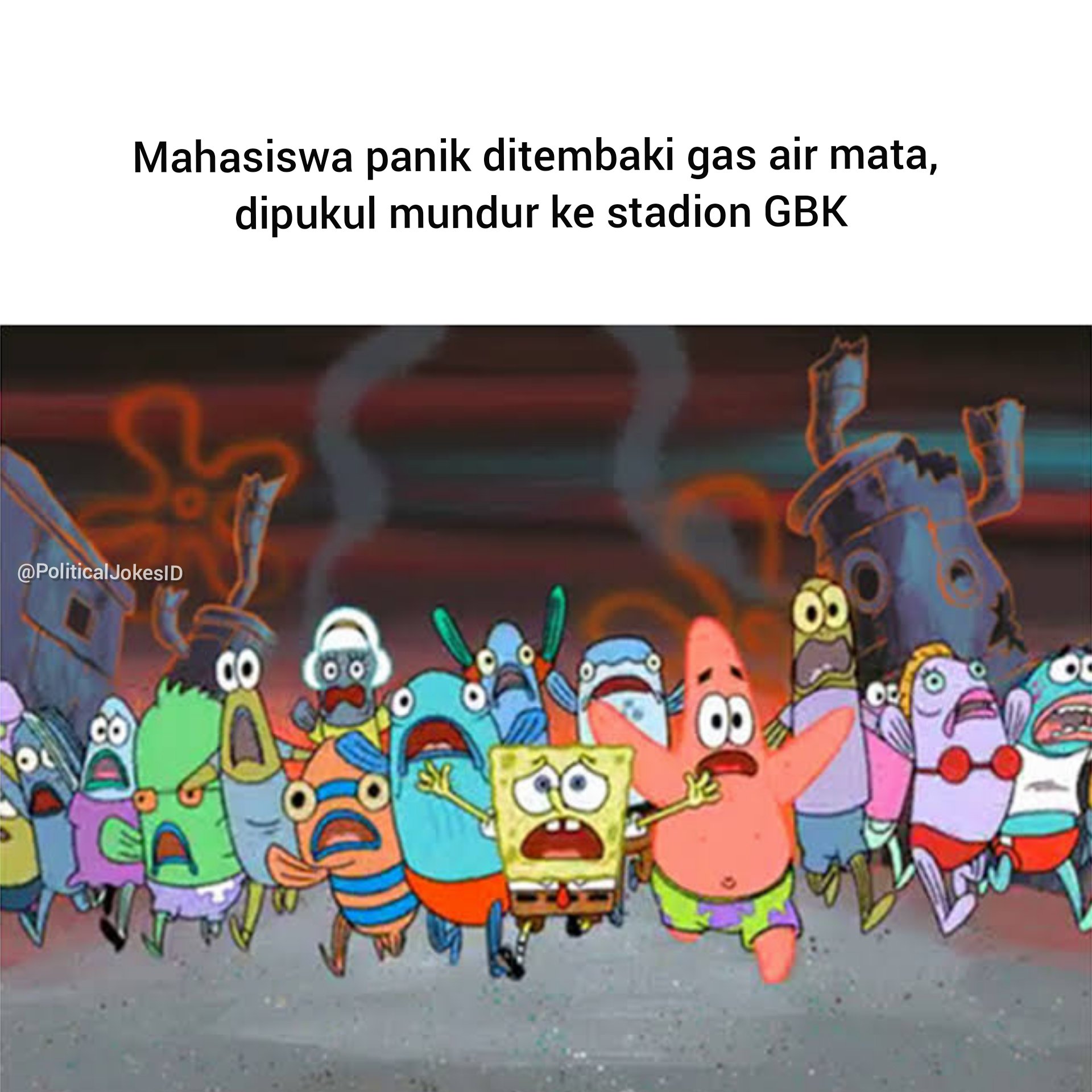 Uživatel Political Jokes ID na Twitteru: „Mundur sedikit kebelakang, siang mahasiswa dari bandung datang. Sorenya ketika mahasiswa dipukul mundur buruh menggantikan mahasiswa maju kedepan gedung dpr. Mahasiswa panik dan mundur ke arah