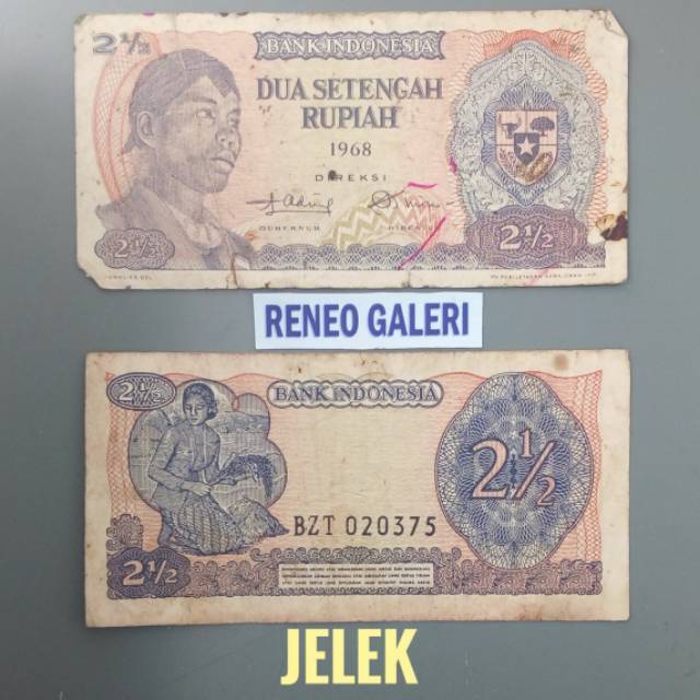 Rp 2 setengah Rupiah 1968 seri Sudirman 2,5.1/2.½ uang kertas kuno Bekas pakai | Shopee Indonesia