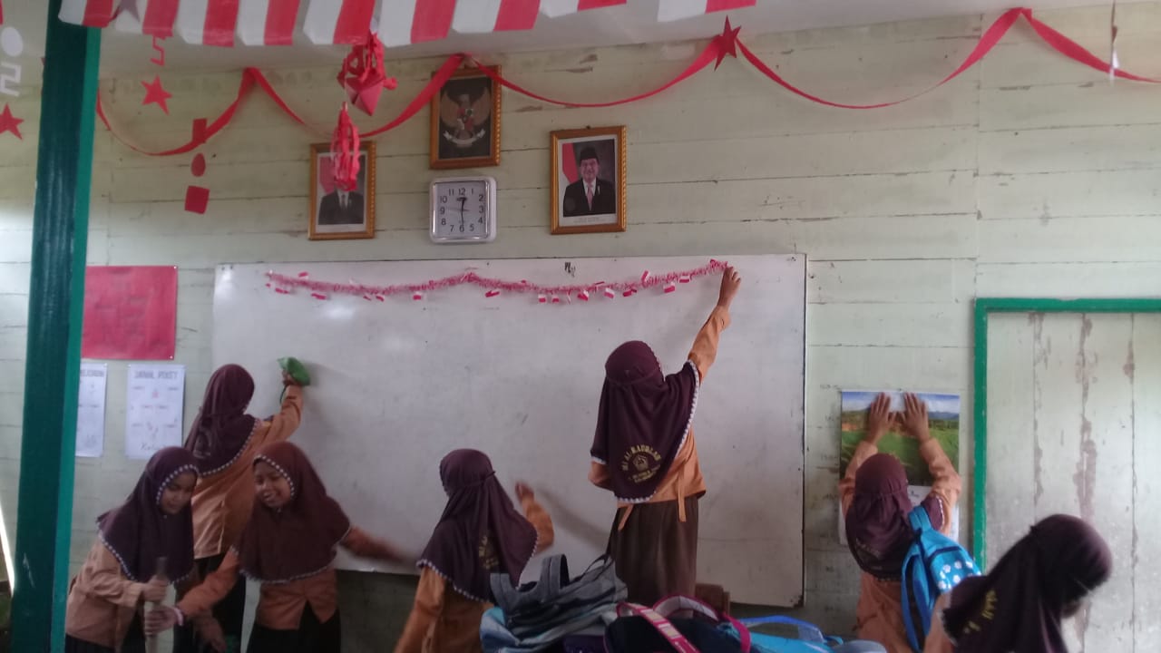 Kegiatan Menghias Kelas V dalam Rangka Menyambut Hari Kemerdekaan RI Ke-74Th | MI Al Raudlah Banjarmasin