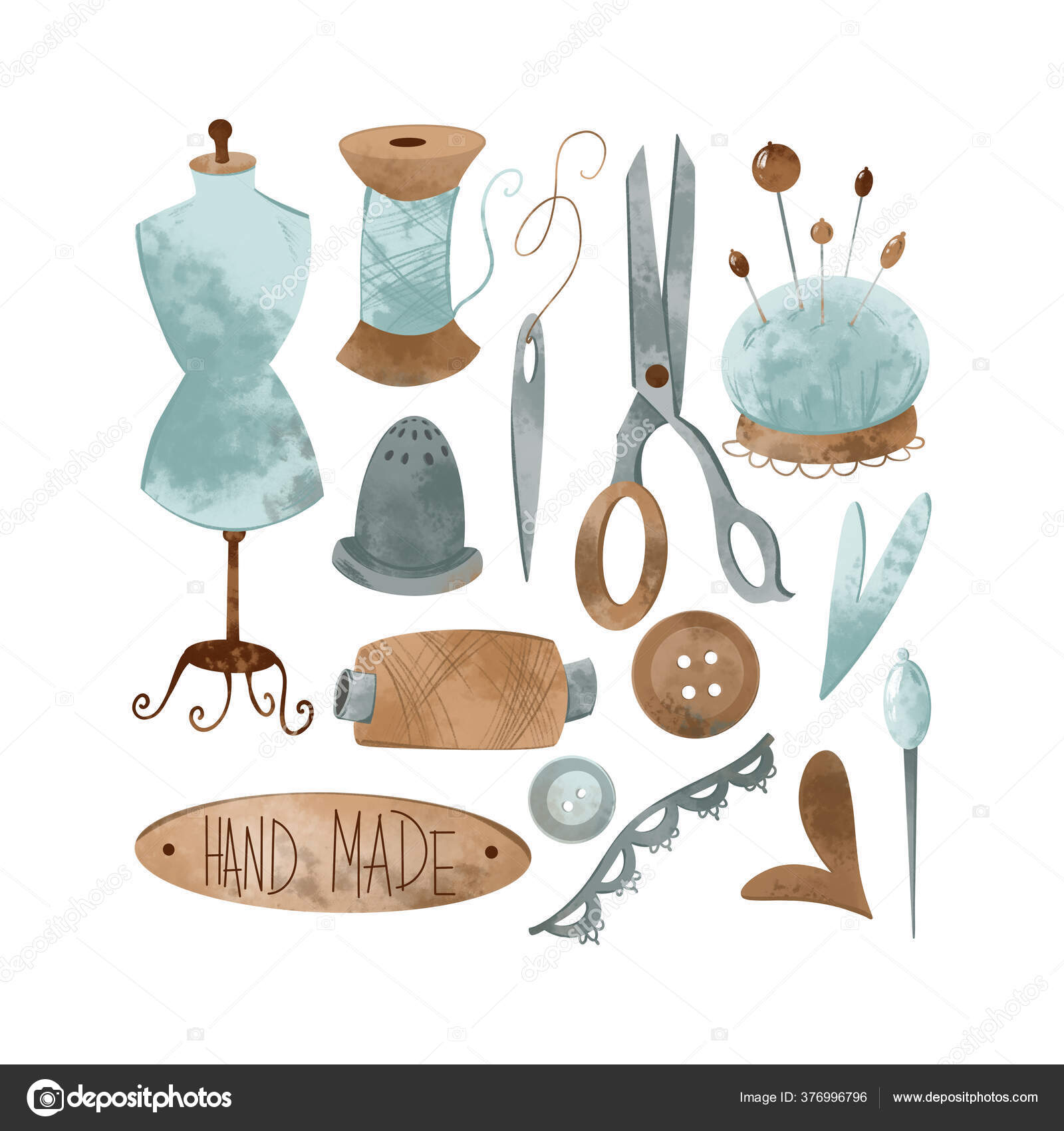 Penjahit Yang Lucu Untuk Menjahit Manekin Benang Jarum Gunting Tombol Stok Foto © Ka.Yansh #376996796