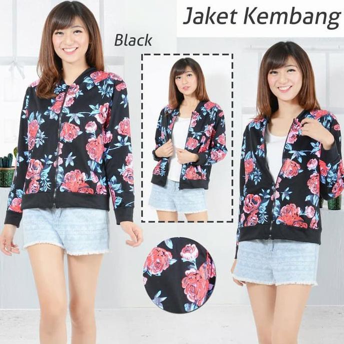 Special Price jaket wanita kerja Jaket bomber sleting wanita gambar bunga hitam - ALL SIZE FIT TO | Shopee Indonesia