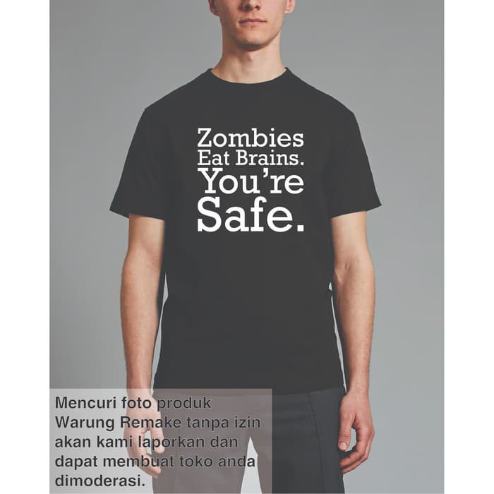 Baju Kaos Distro Murah Zombies Eat Brains Youre Safe - S KR710 | Shopee Indonesia