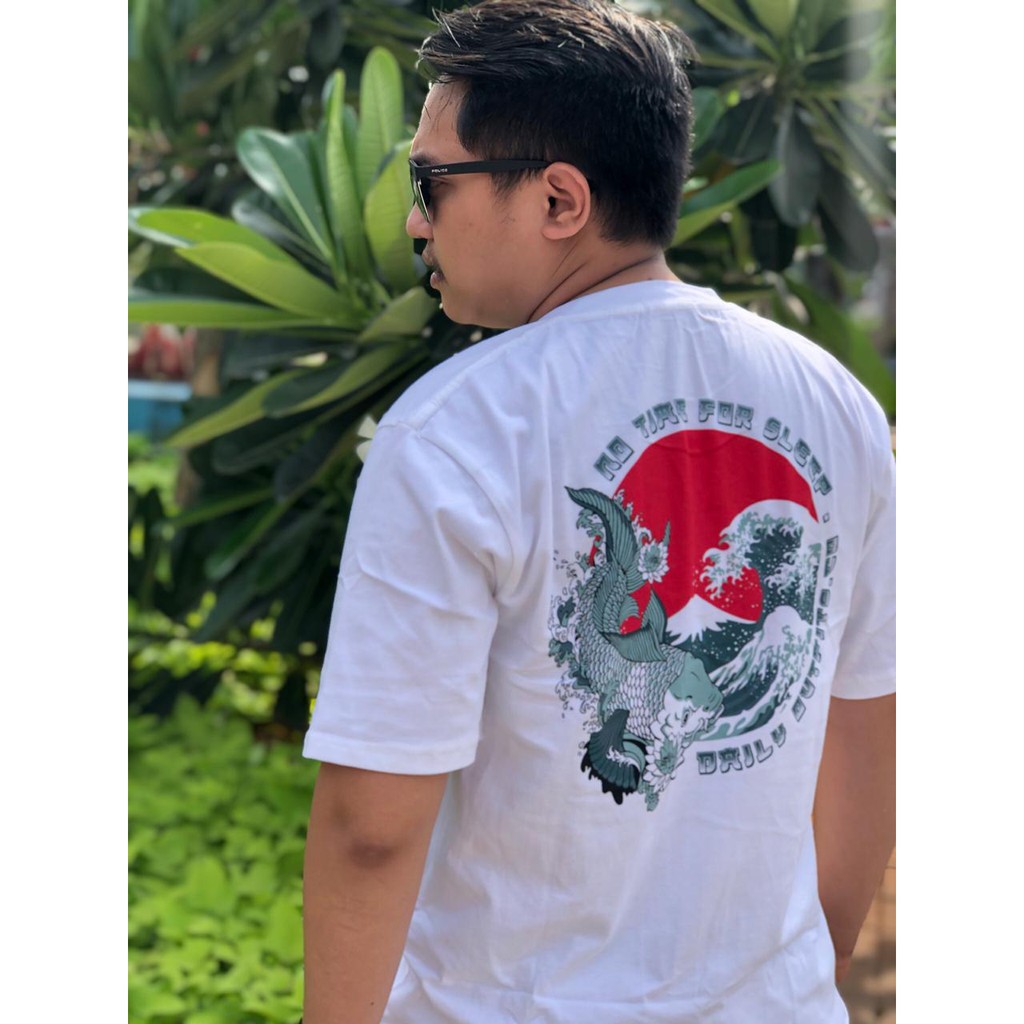 Kaos Pria Casual Sablon Putih Katun Combed Japan Style Ikan Koi Unisex Premium Quality | Shopee Indonesia