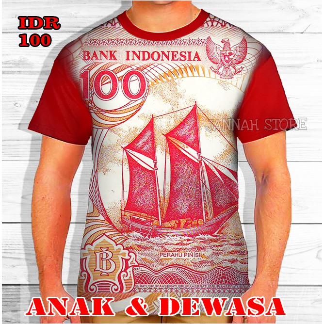 Baju Kaos 3D Duit Seratus Kertas Perahu Pinisi Kaos Gambar Uang 100 Rupiah Full Print di Lapak Jannah Store | Bukalapak