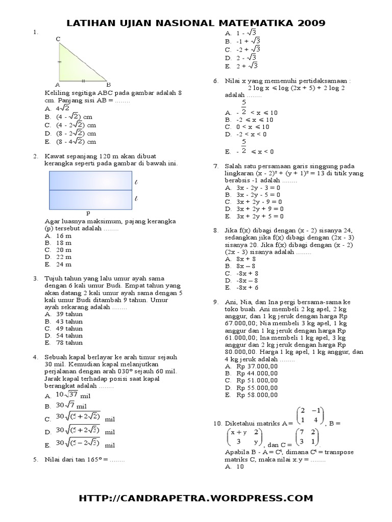 Latihan Ujian Nasional Matematika 2009