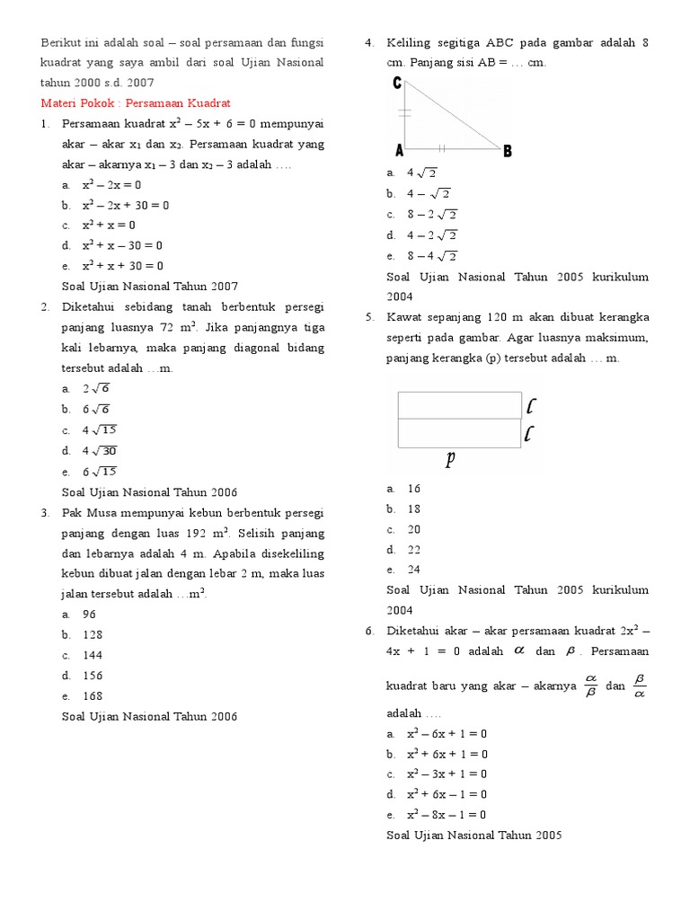 soalPersamaandanfungsikuadrat