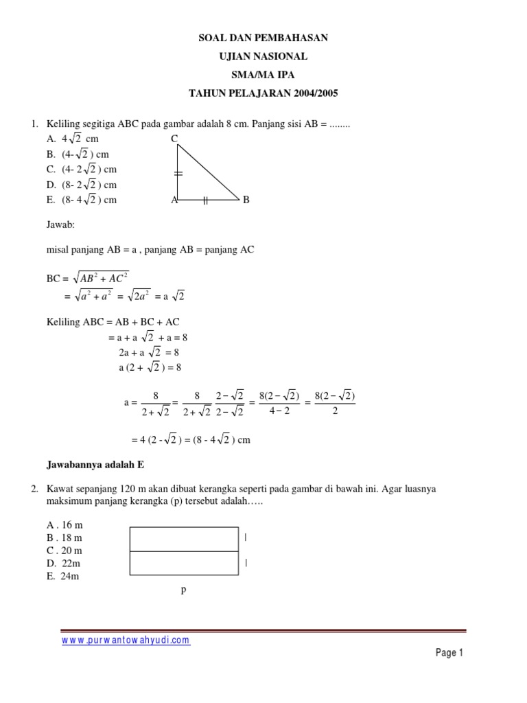 Soal Soal dan Pembahasan UN Matematika SMA IPA 2005