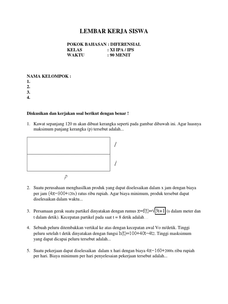 Lembar Kerja Siswa: Pokok Bahasan: Diferensial Kelas: Xi Ipa / Ips Waktu: 90 Menit
