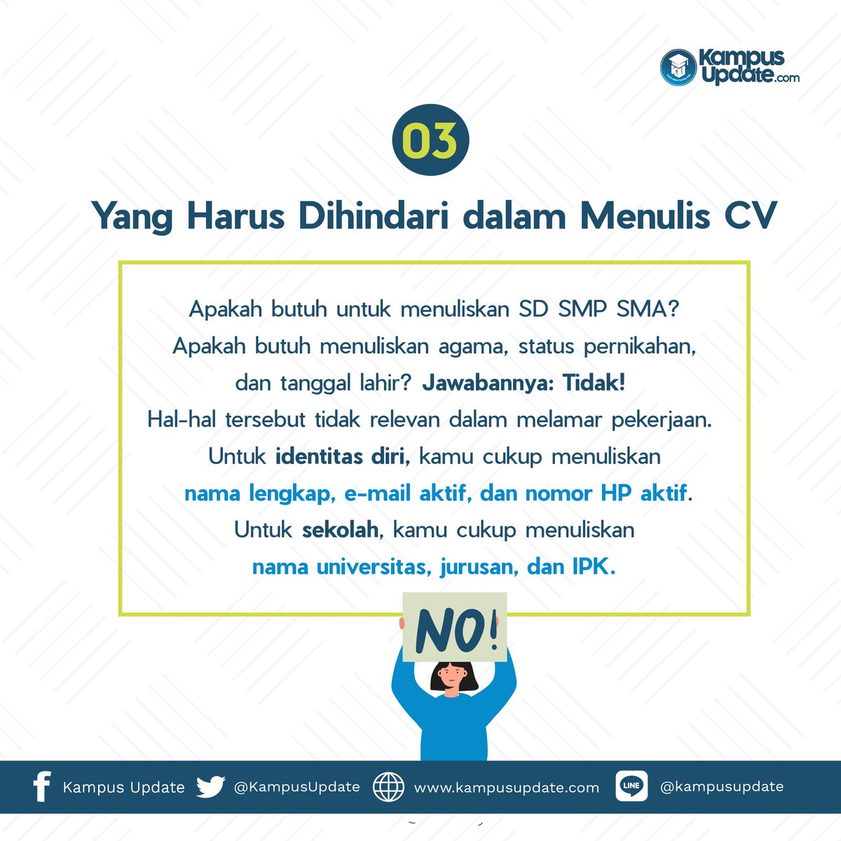 Kampus Update on Twitter: “Yang Harus Dihindari dalam Menulis CV Nah, ini adalah kesalahan umum yang sering dilakukan oleh pelamar kerja. Jangan sampai kamu melakukan kesalahan ini juga ya, Updaters!… https://t.co/zHB7FmQRni”