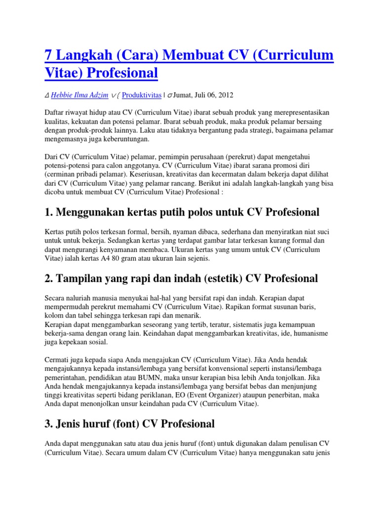7 Langkah (Cara) Membuat CV (Curriculum Vitae) Profesional