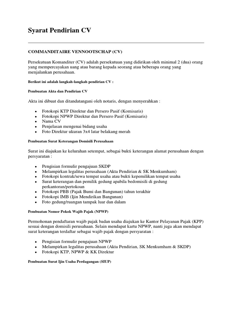 Syarat untuk Mendirikan CV | Izin Usaha CV, Modal CV, SIUP, UUG CV - …