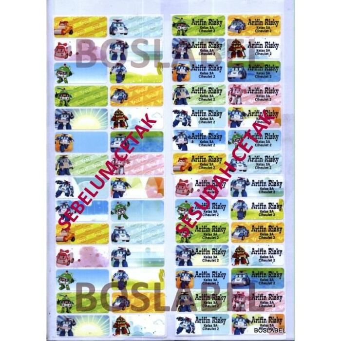 Jual Stiker / Label Nama anak, bermacam macam gambar / karakter, anti air - Kota Tangerang Selatan - BosLabel | Tokopedia