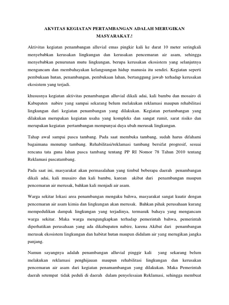Akvitas Kegiatan Pertambangan Adalah Merugikan Masyarakat