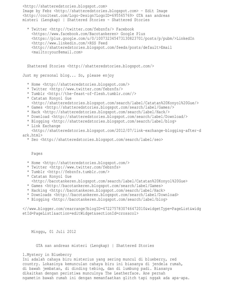 Robby Fernando: Misteri Misteri Dalam Gta Sa + Lokasinya
