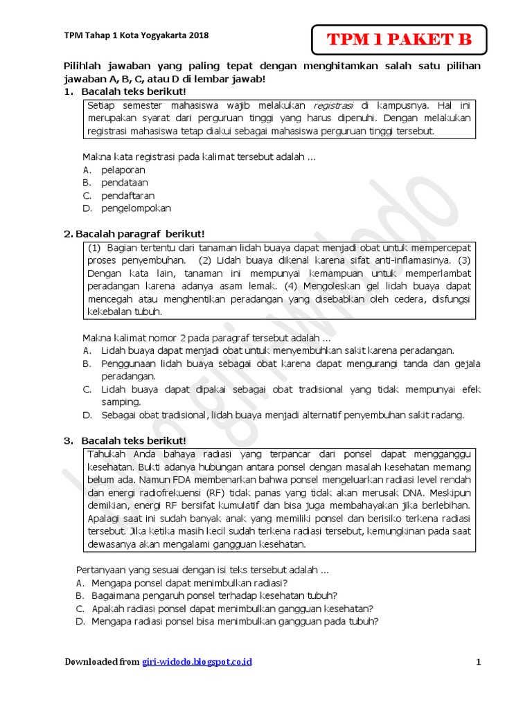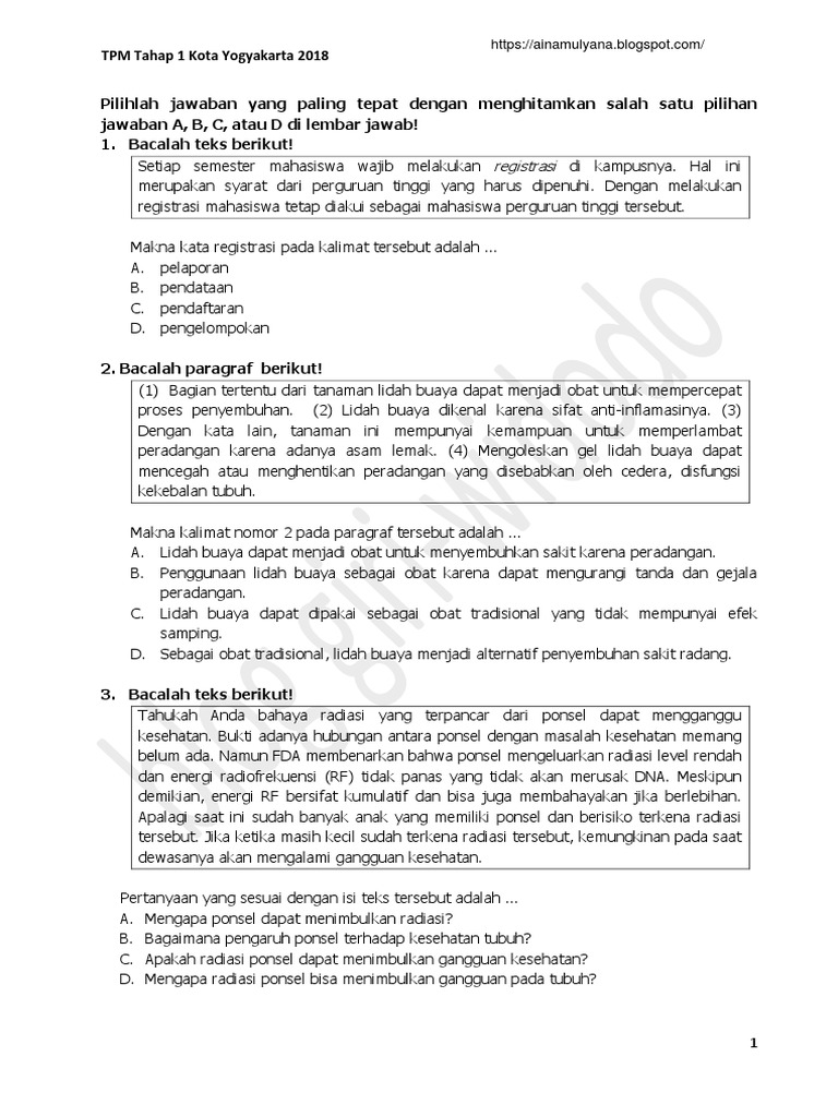 SOAL DAN PEMBAHASAN - berikut untuk menjawab soal nomor 3-5. Bacalah dengan saksama! (1) Ada pendapat yang mengatakan bahwa saat ini banyak remaja yang tidak - [PDF Document]