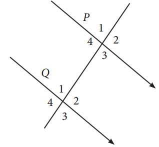 Perhatikan gambar di samping. pasangan sudut yang jumlahnya 180 derajat a. sudut p2 dan q4b. sudut p1 dan q3c. sudut p3 dan q2d. sudut