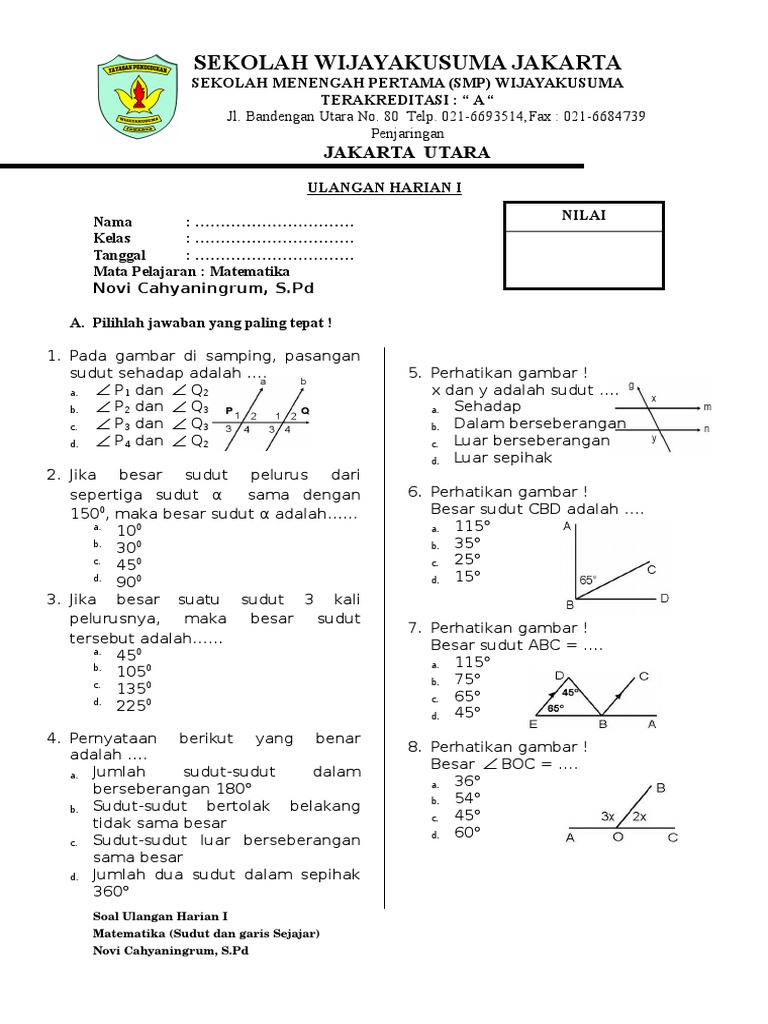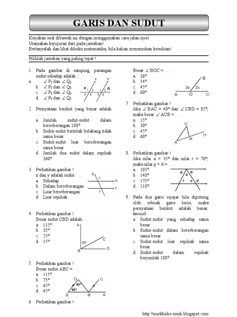 CONTOH SOAL DAN JAWABAN GARIS DAN SUDUT