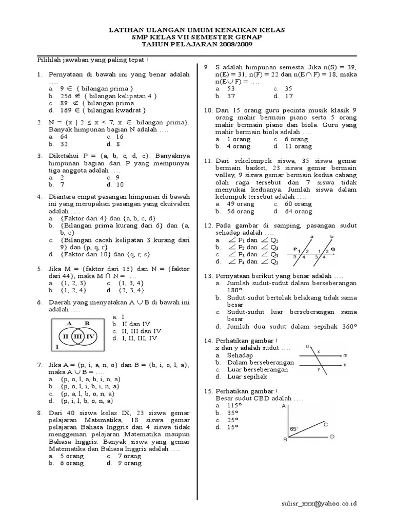 Soal Uas Genap Matematika Smp Kelas Vii1