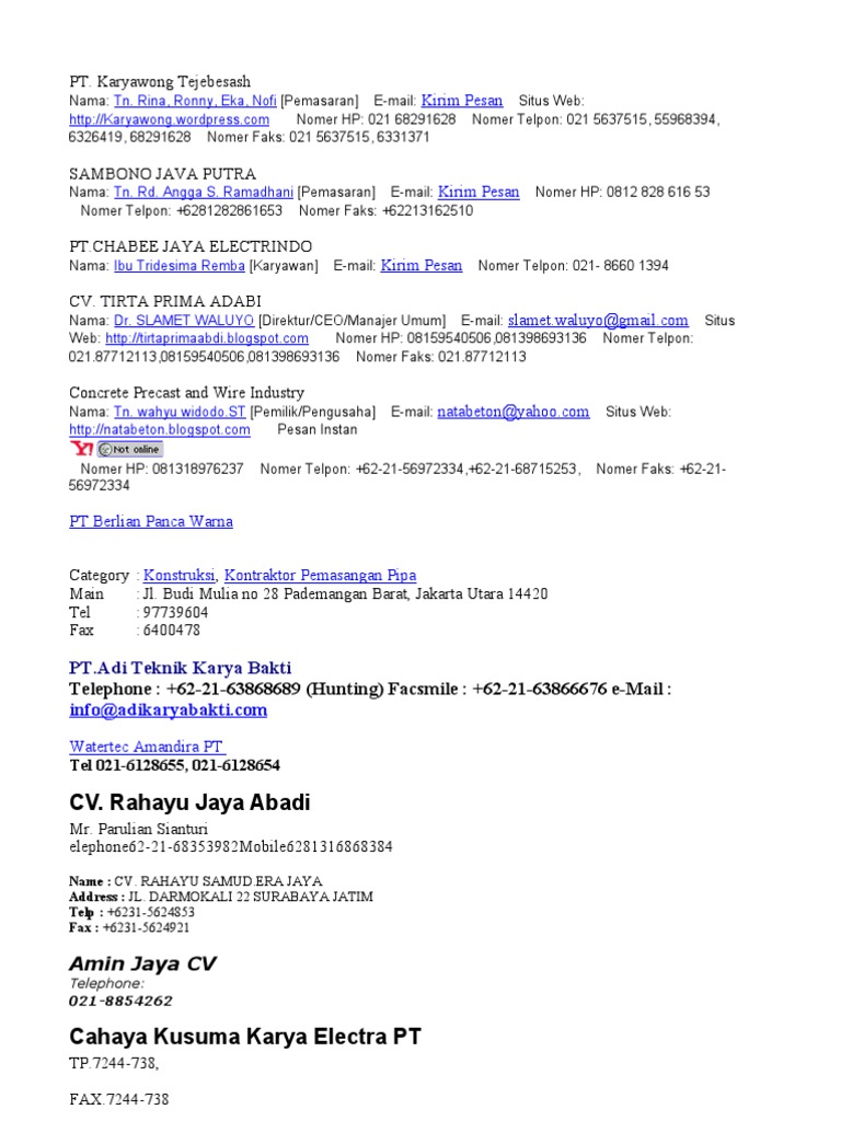 CV Afita Consultant 021 8225833 | Surat, Nama, Pesan