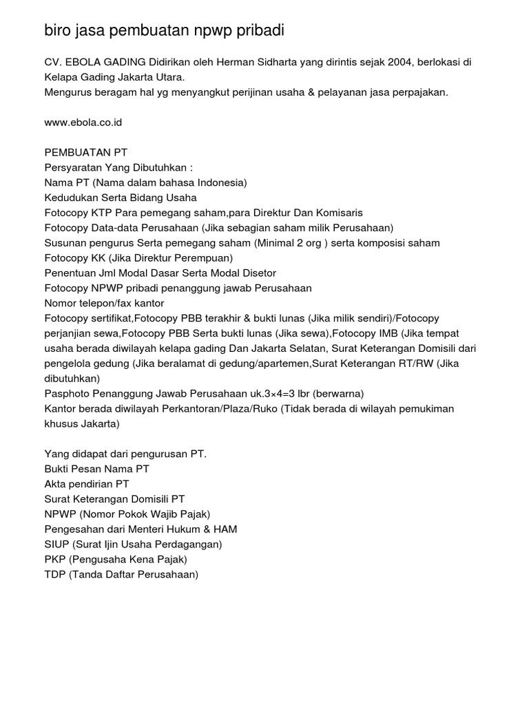 Terjual JASA PENDIRIAN PT,CV,PMASIUP,TDP | KASKUS