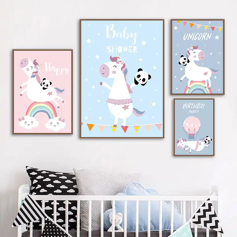 Nordic Seni Unicorn Kanvas Poster Lukisan Kartun Hewan Dinding Gambar Cetak Anak Anak anak Bayi Kamar Nursery Dekorasi| | - AliExpress