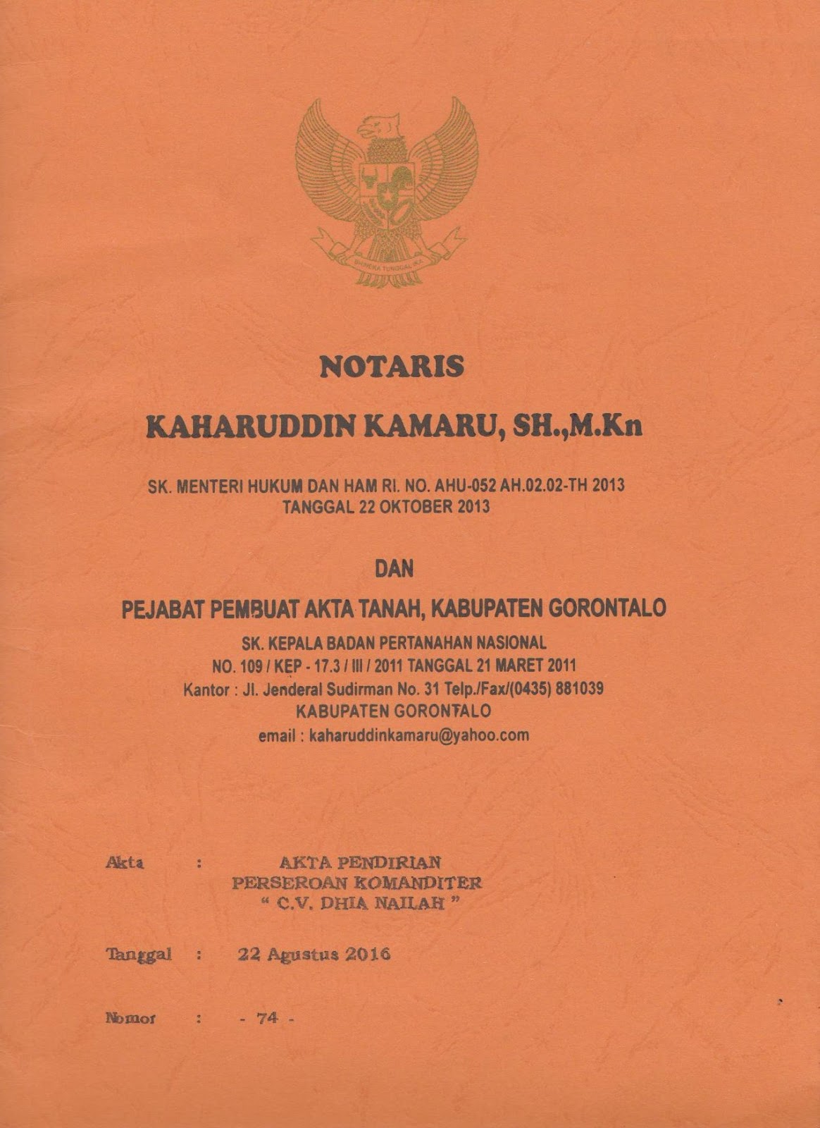 IRAZ: Dokumen Legal Aspek Pendirian CV. “DHIA NAILAH” dan Prosedur Mendapatkannya